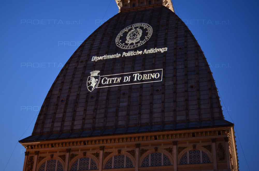 For two consecutive years, PROIETTA and CUEIM have created the projections for the campaign of the Department of Drug Control Policy. The event involved 21 Italian cities that have simultaneously projected the DPA communication on the most important historic buildings. For the event have benn used the projectors Monster 700-1500 equipped with the changes image.