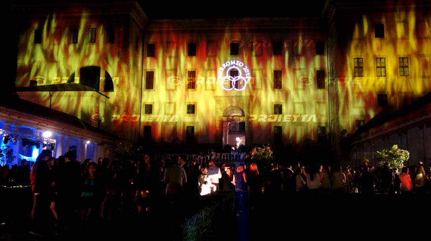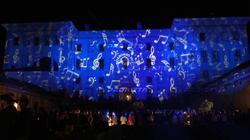 Scenografie dinamiche ed effetti luce per la festa privata del collegio Borromeo di Pavia. Un installazione di sei proiettori PROIETTA Monster 1200 - 2000, ha illuminato la location dell'evento con la proiezione di cinque effetti dinamici differenti. Il suggestivo risultato è stato ottenuto con gli effetti note musicali che salgono, effetto acqua,effetto fuoco,effetto stelle edeffetto glitter; sapientemente gestiti e altrenati dallo staff PROIETTA che ha supportato l'evento.